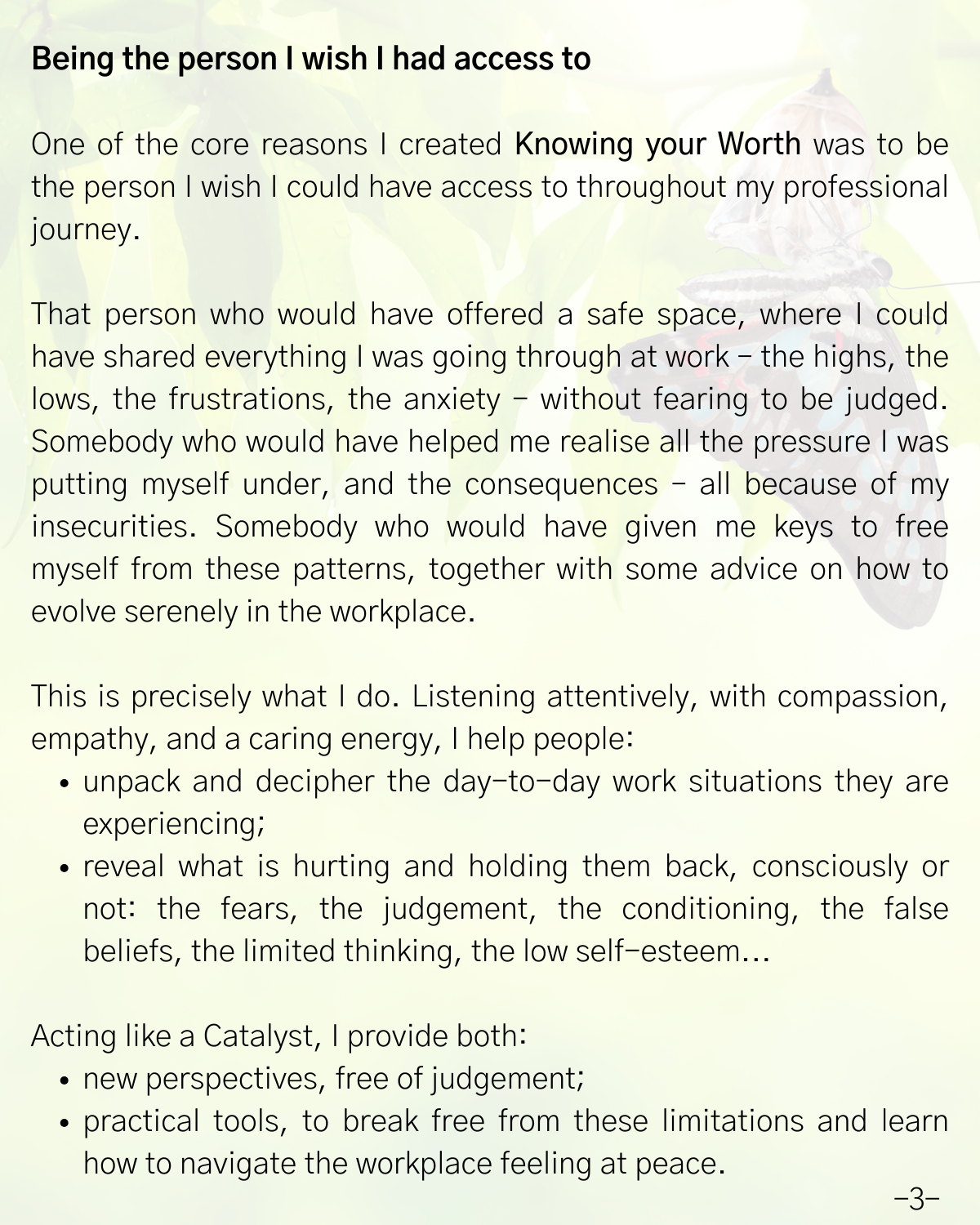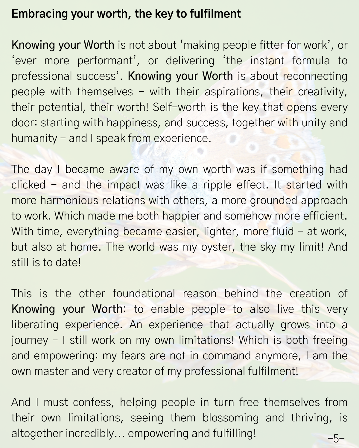 This is why I created Knowing your Worth: to bring back self-worth at the heart of people’s and organisations’ development.